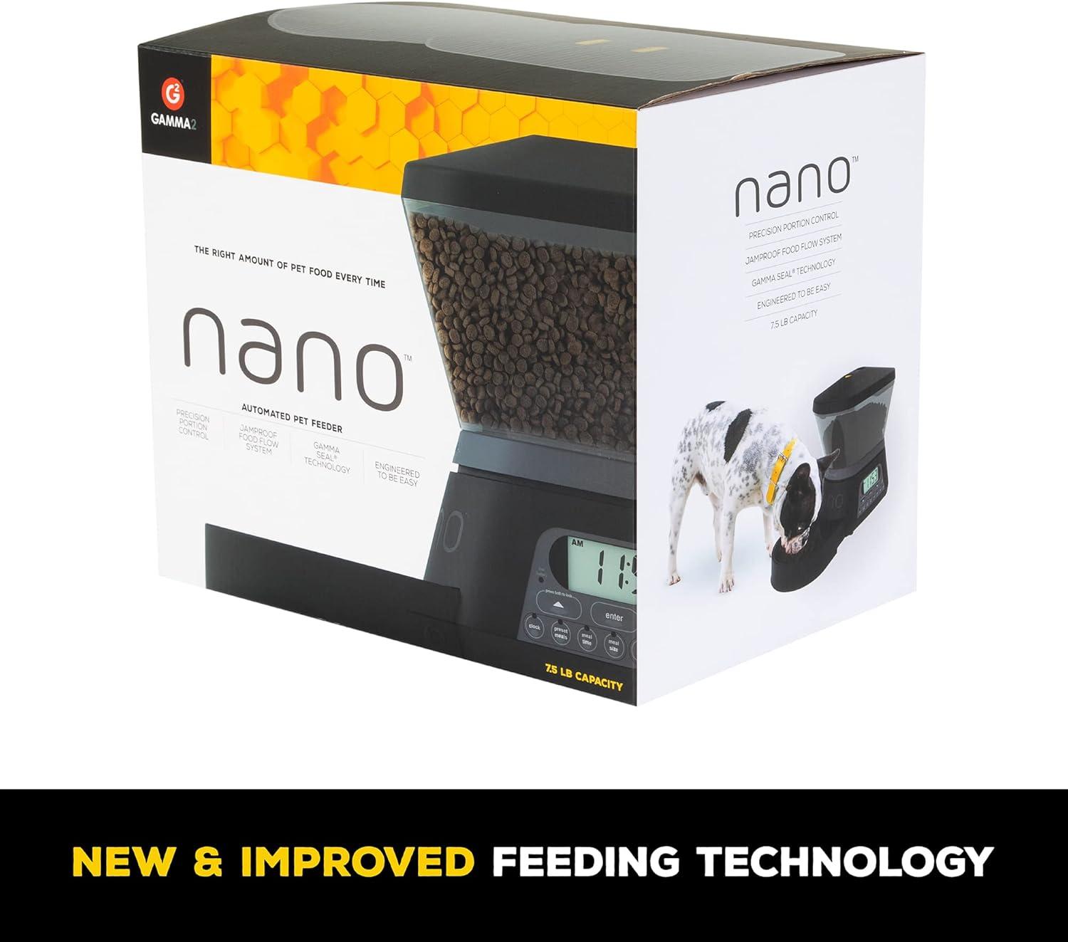 Suitable for households with multiple pets, the Gamma2 Nano Automatic Pet Feeder has a 7.5 pound dog or cat food capacity, doubling as convenient pet food storage container, and slow feed mode to control overeating for your furry fast eaters. The feeder is part of the Gamma2 pet supplies brand, which offers a range of advanced technology and engineering in pet products, including USA-made dog food and cat food containers, automatic pet feeders, and more.