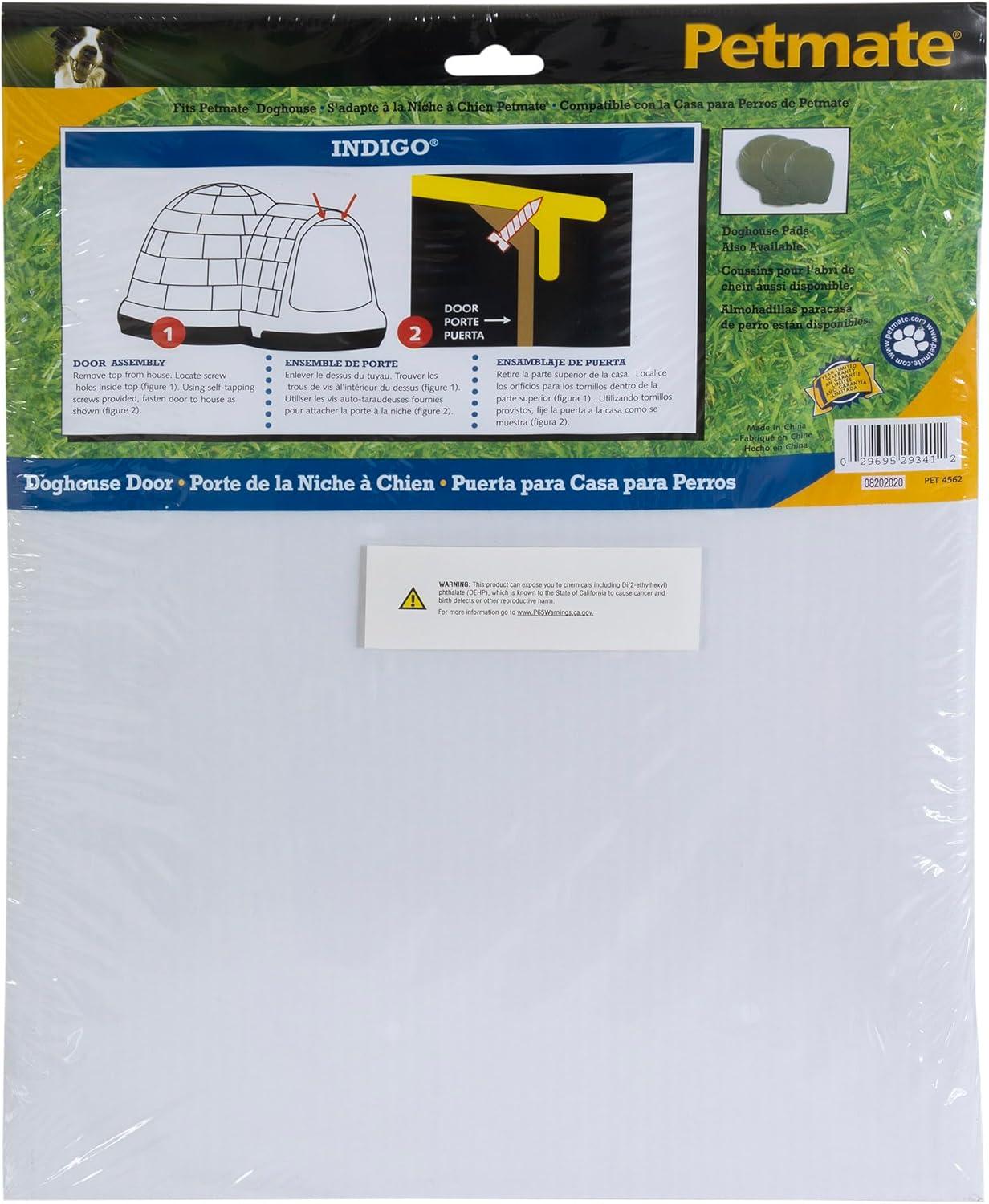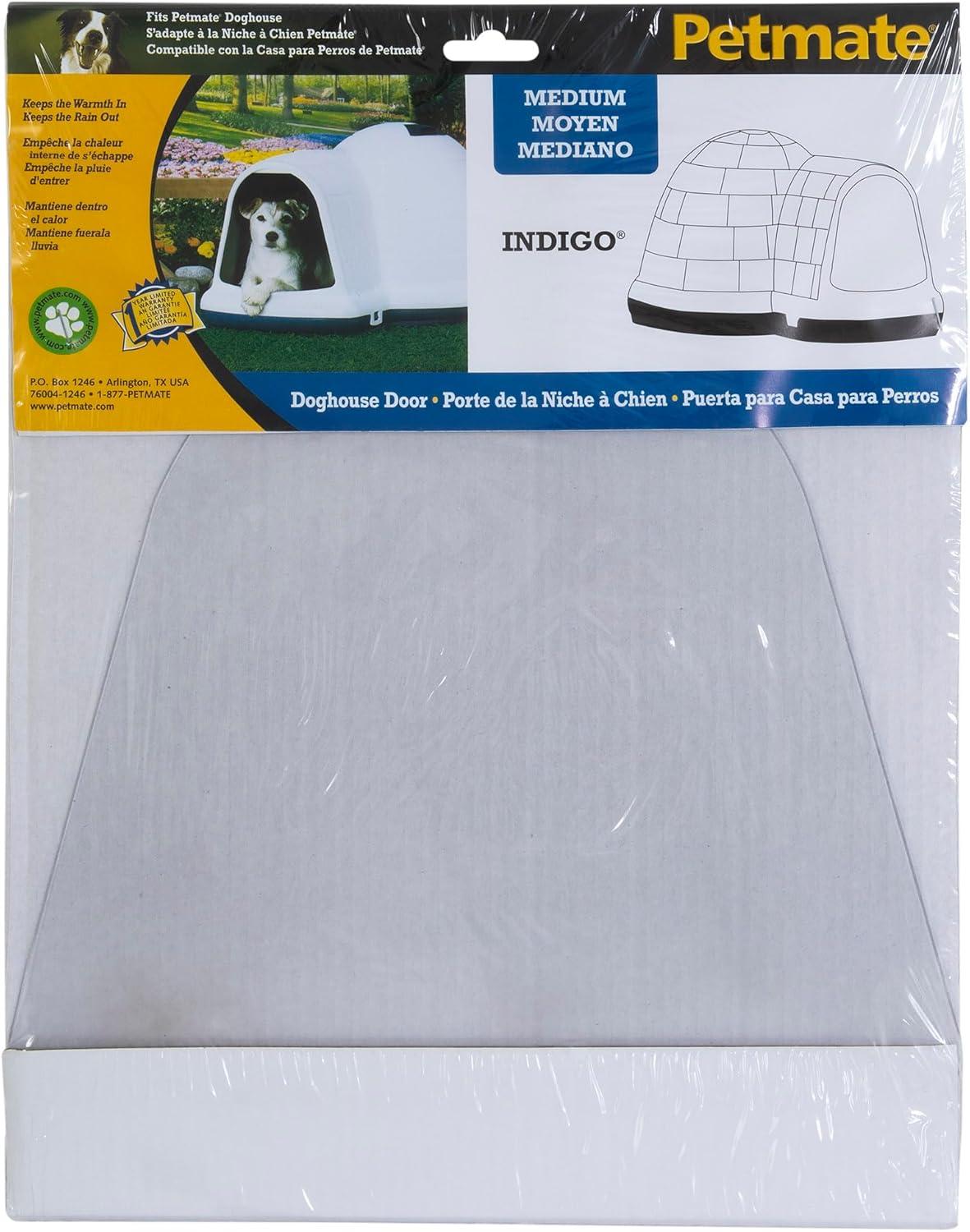 Keep the warmth in and the rain out of your Petmate® Indigo® Outdoor Shelter with a door designed specifically for the Indigo. Designed to fit on Petmate's Indigo Dog Houses; these doors are made of heavy-duty; flexible vinyl that will insulate your Indigo shelter to keep your pet warm and safe from the elements while outside. The durable construction of these doors makes for long-lasting protection and helps to create a den-like space that dogs instinctively desire.
