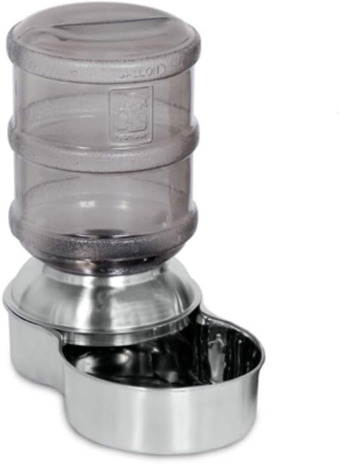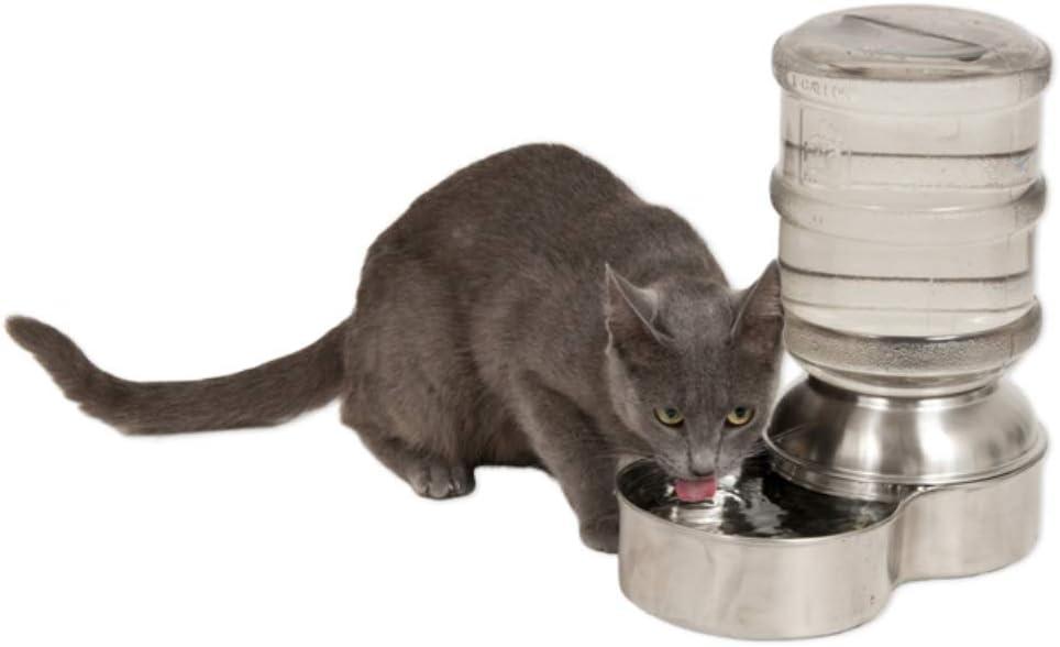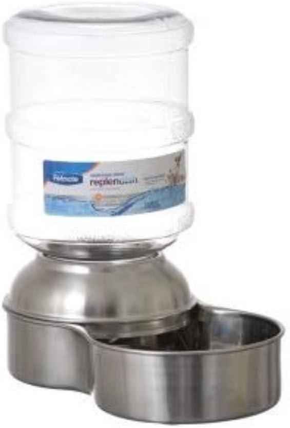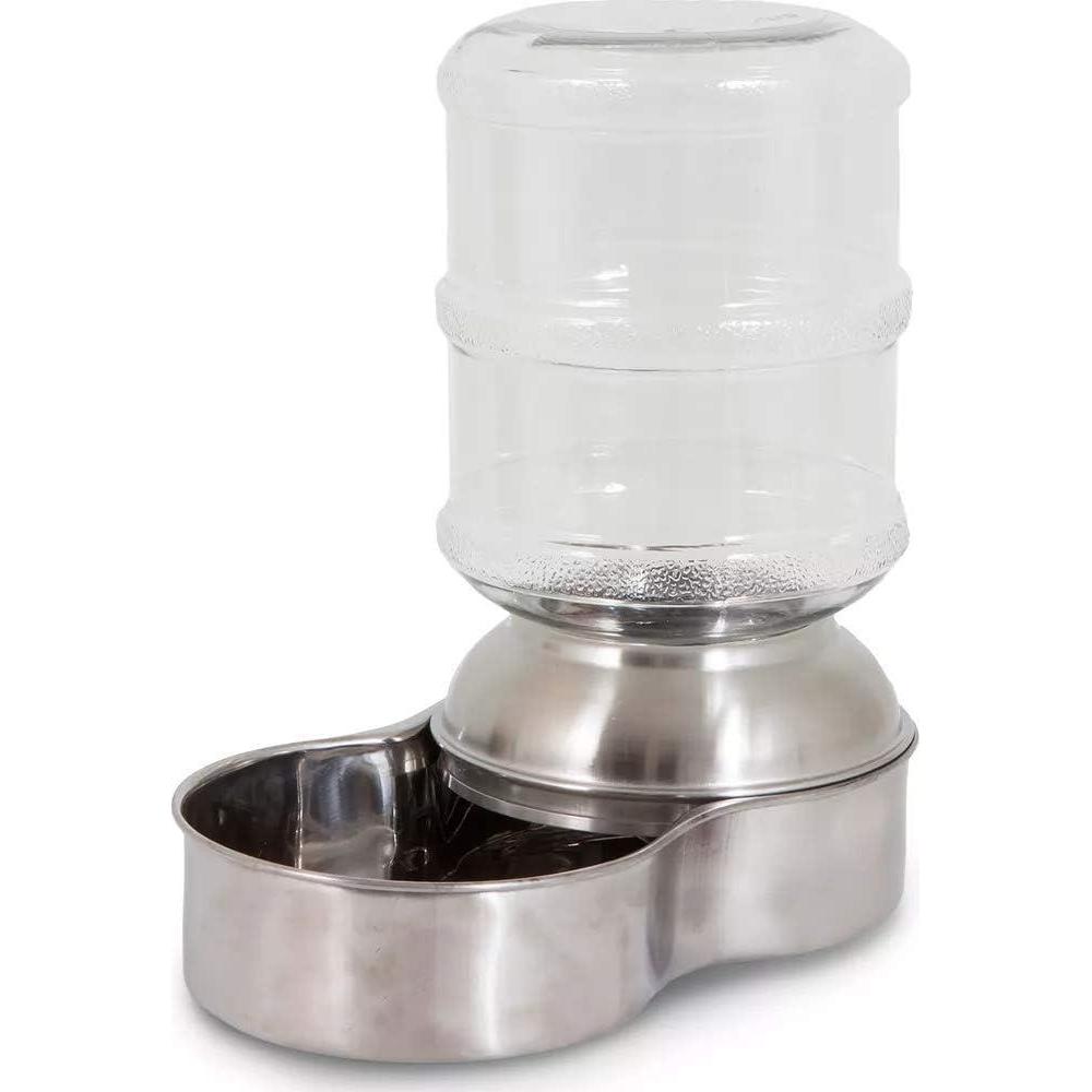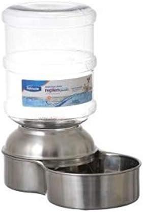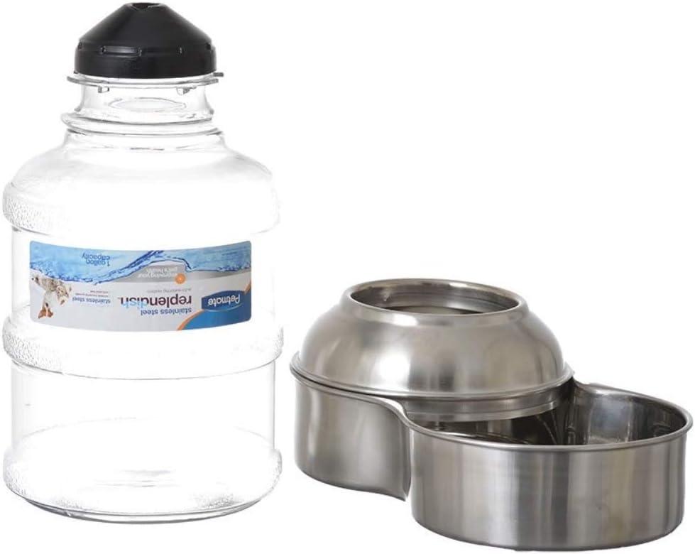 The Petmate Stainless Steel Replendish Waterer provides pets with a delicious source of fresh water with refills required for pet parents. The stainless steel cat and dog water dish is vet-recommended to resist growth of unwanted particles and can be safely placed in the dishwasher for high-temperature sanitation. For pet parents with busy lifestyles, this stainless steel dog and cat waterer ensures pets have easy access to an extended supply of fresh water. Featuring easy-grip grooves, pet parents can easily lift the stainless water dispenser without spilling, while the skid-resistant base provides stability. This Petmate water dispenser is available in a 1-gallon capacity, to accommodate a wide range of small pets. With a sleek design, Petmate's stainless steel automatic water bowl complements modern homes and kitchens with stainless steel accents. We recommend cleaning the bottle with a bottle brush and warm soapy water. Let air dry